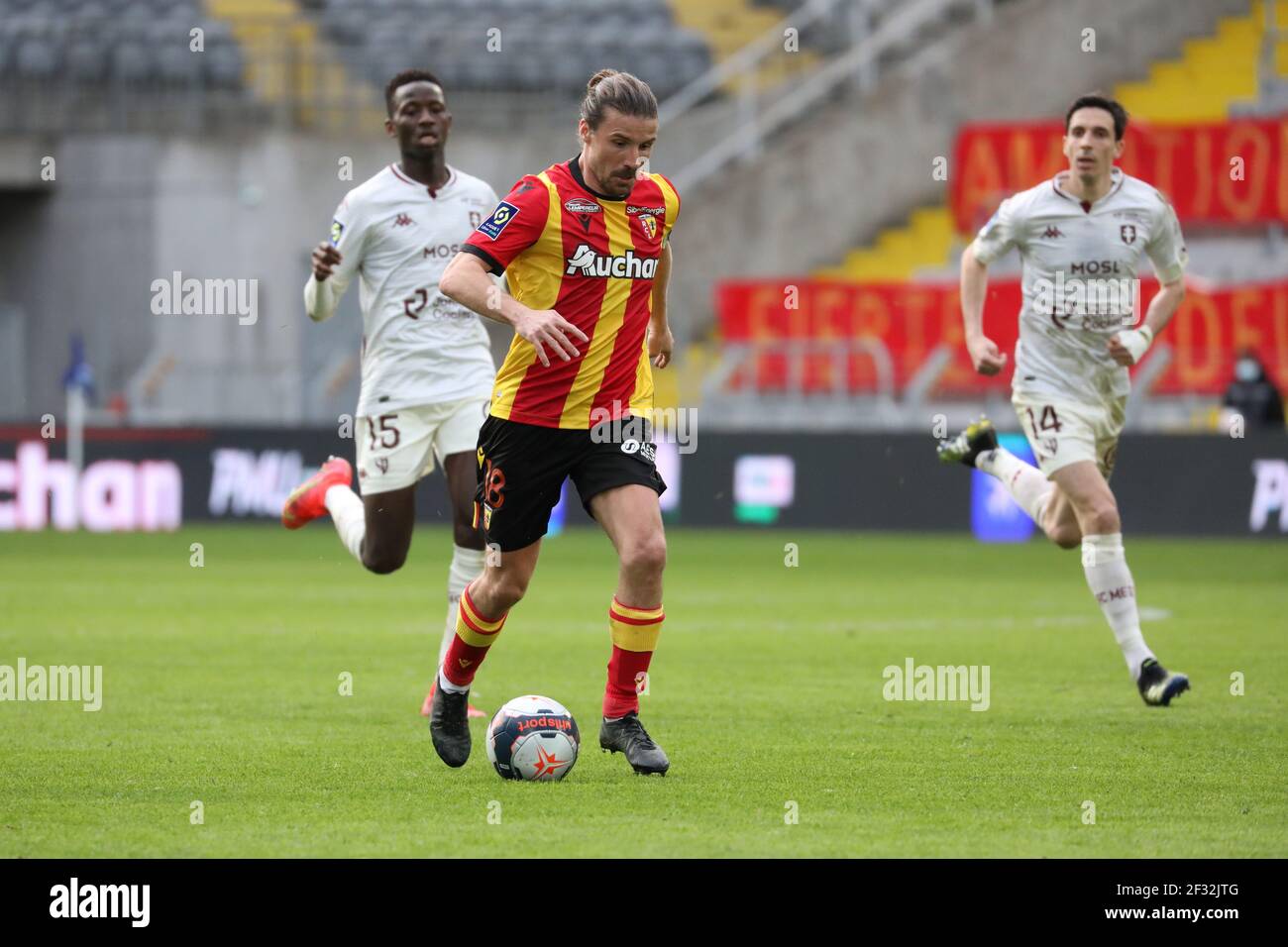 Captain Rc Lens 18 Yannick Cahuzac During The French Championship Ligue 1 Football Match Between Rc Lens And Fc Metz On March 14 2021 At Bollaert Delelis Stadium In Lens France Photo